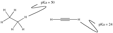 Figure AB11.3. The pKa of protons attached to carbons with tetrahedral and linear geometries.