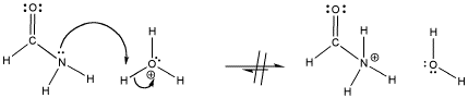 Figure AB15.5. An amide, and the unfavourable protonation of an amide.