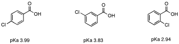 Figure AB12.6. The effect of distance on inductive electron withdrawal in an aromatic system.