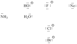 Figure AB2.2. Some examples of Lewis basic ions and molecules. Note that neon, although it has nonbonding electron pairs or lone pairs, does not usually act as a Lewis base.