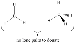 Figure AB2.3. Carbon and boron "hydrides". Neither of these compounds has a lone pair, and neither is a good Lewis base.