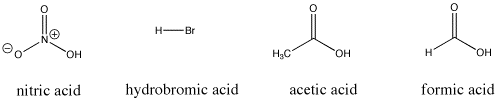 Figure AB9.3.> Some Bronsted acidic compounds; these compounds all supply protons relatively easily.