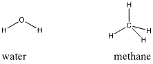 Figure AB9.4. Some not-so-acidic compounds. Water is very, very weakly acidic; methane is not really acidic at all.