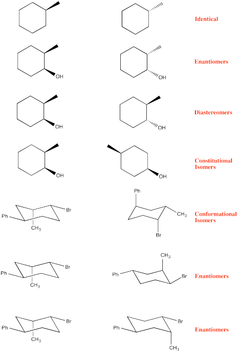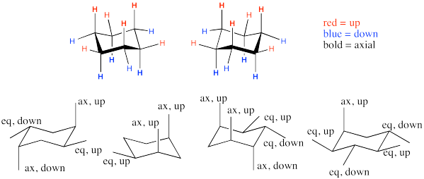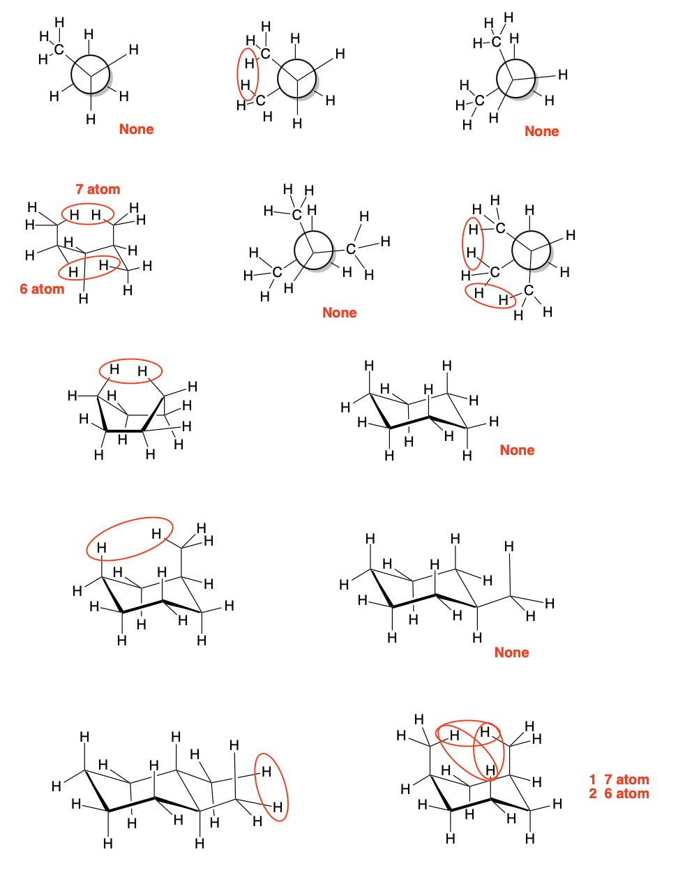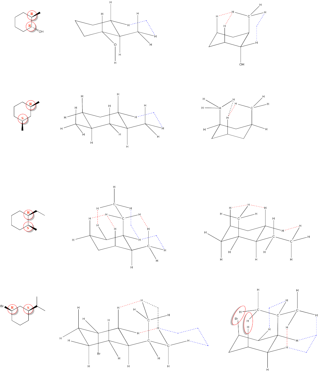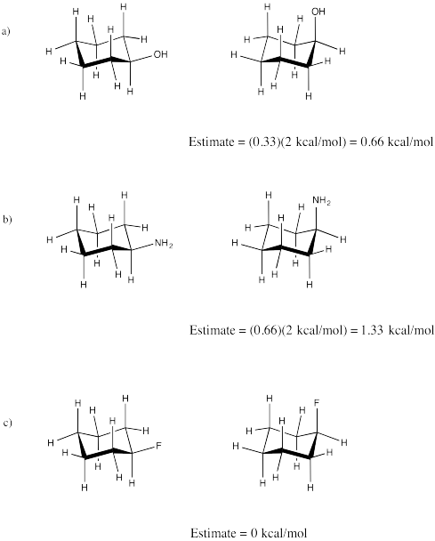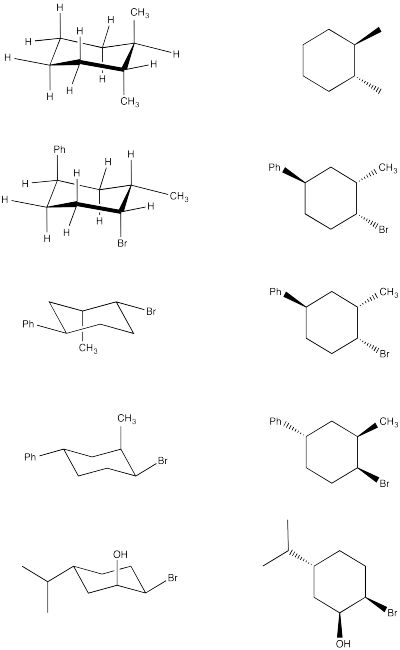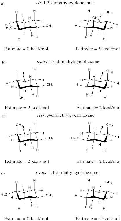 j) The substituents around the flexible six-membered ring could adopt a number of conformations. We will choose ways that minimize additional steric interactions so that we can focus on the most basic interactions.