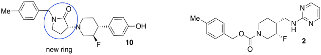 i) They were trying to decrease the number of possible conformations, or shapes, that the compound could adopt. That way, it would be less likely to bind in both the GluN2B receptor and the hERG receptor.