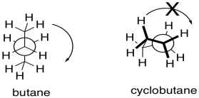 The ring introduces conformational rigidity by preventing the bond from undergoing complete rotation; it is tied back by the connection on the other side of the ring.