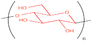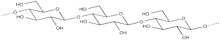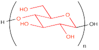 The polymer is formed by enchaining a number of glucose monomers together. The particular form of glucose is α-D-glucopyranose. At the ends of the polymer chain, there are two hydroxyl end groups.