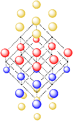 There is a cubic unit cell, but it is harder to see. The cube is tipped on one of its corners. We will strip away some of the extra atoms in the hexagonal layers so we can get a better look.