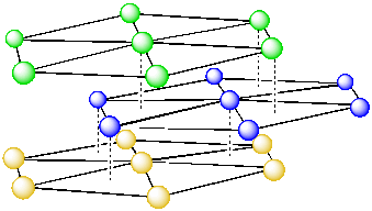 Figure ME3.10. Three hexagonal layers of atoms. The atoms in the top layer lie directly above the atoms in the bottom layer.