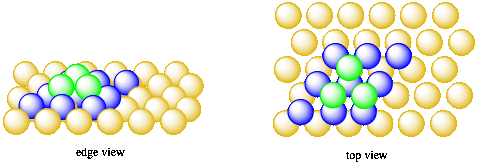 Figure ME3.9. Adding the third layer of atoms (green). There are two different ways to add this layer.