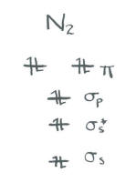 The orbital picture we have described above is really just a potential picture of the electronic structure of dinitrogen (and any other main group or p-block diatomic). We won't get a real picture of dinitrogen's structure until we populate these potential levels with electrons.