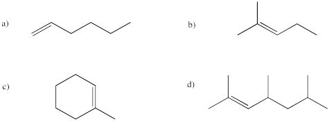 In naming alkenes, the suffix "ene" is used instead of "ane". The base name of the alkene describes the length of the chain containing the double bond. A number says how far the double bond is from the nearest end of the chain.