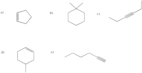 a) any carbon in pentane.    b)  the second carbon in 2-butene.    c) the first carbon in 1-hexyne.