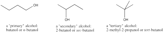 Sometimes alcohols are classed into sub-groups, as "primary", "secondary" or "tertiary".  Those words just describe the carbon attached to the OH group.  How many carbons are attached, in turn, to that carbon?  Are there two, three, or just one?  Those classifications have some influence on how reactive the alcohol will be under different conditions.