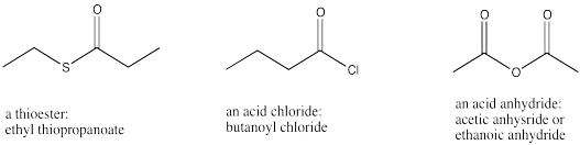 Figure IM12.7. Less common carboxyloids: thioesters, acid chlorides, and acid anhydrides.