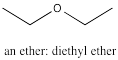 Ethers are kind of like alcohols in that they contain oxygen atoms.  Ethers contain a C-O-C group, but neither carbon is part of a carbonyl.  Generally, to name an ether, we can list the two parts attached to the oxygen atom as separate words, and follow those two names with "ether". More formal naming systems use the name of the longest alkyl chain as a suffix and describe the attached smaller alkoxy group with a prefix.