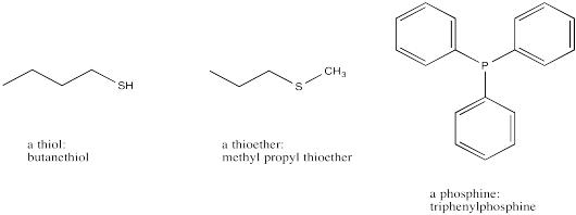 Figure IM12.11. Less common groups related to alcohols, ethers, and amines: thiols, thioethers, and phosphines.