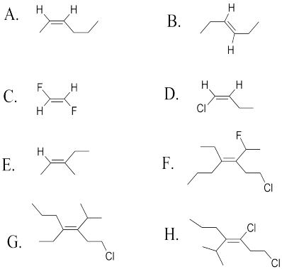 Determine whether the following molecules are E or Z.