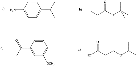 Problem NMR9.5. Measure the integrals in the following compounds. Given the integral ratios and chemical shifts, can you match each peak to a set of protons?