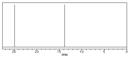Figure NMR3.1. Simulated 13C NMR spectrum of butane (showing only the upfield portion of the spectrum).