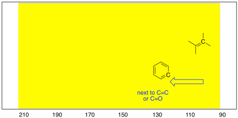 Figure NMR4.5.The difference between arene (aromatic or benzene) carbons and alkene carbons in the 13C NMR spectrum.
