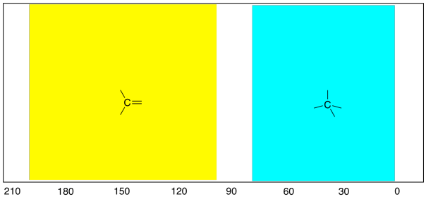 Figure NMR4.2. Comparison of the trigonal planar or sp2 region with the tetrahedral or sp3 region of the 13C NMR spectrum.