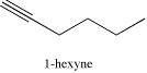 One example of a compound containing sp carbons is 1-hexyne. Its spectrum is shown below.