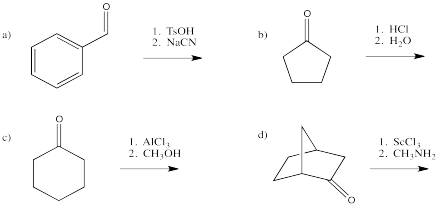 Show, with arrows, the activation of the following carbonyls, followed by donation from the nucleophile.