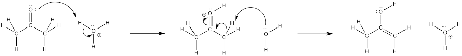 Figure CO4.6. Curved arrow illustrating the mechanism of keto-enol tautomerizatio under acidic conditions.