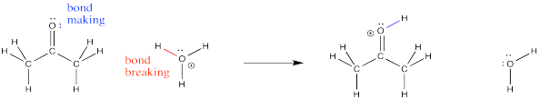 Figure CO4.3. Bond-making and -breaking during protonation of a carbonyl oxygen.