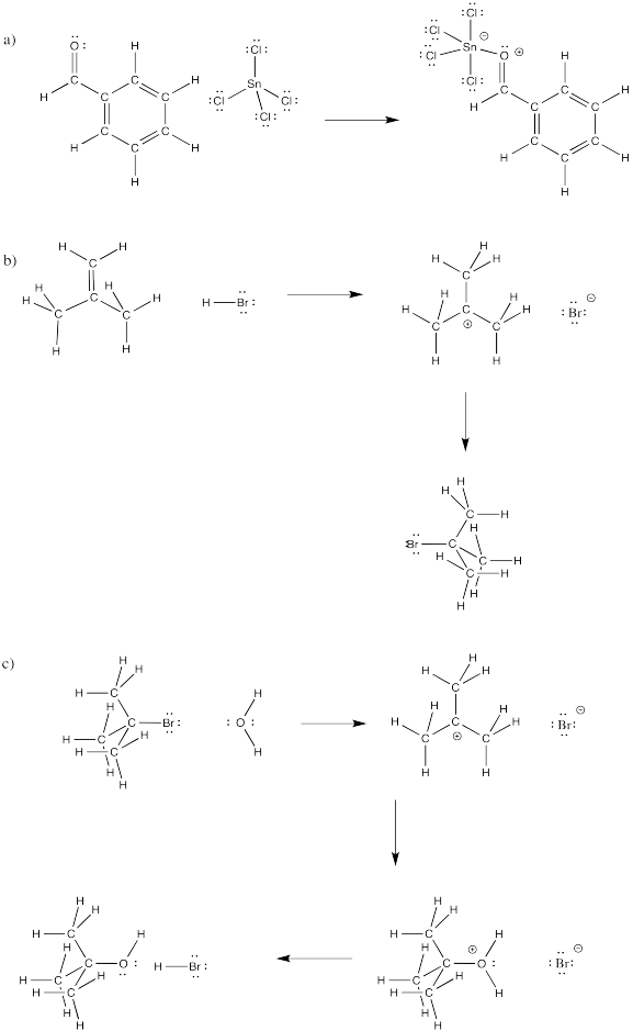 Curved arrows from the nucleophile to the electrophile show the path of electrons in the reaction.