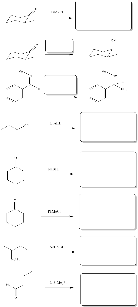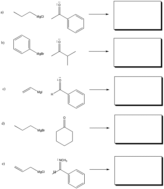 Show the products of the following reactions. Assume workup with aqueous acid after each reaction.