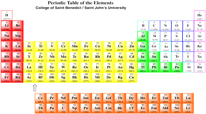These polar covalent bonds can be found any time a carbon atom is bound to a metal. Remember, the metals are the aroms in the coloured boxes in the periodic table below.