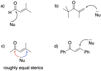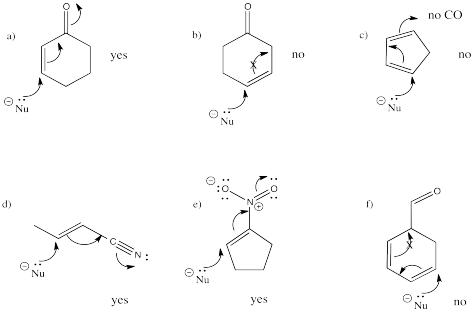 d) Delocalization makes the enolate a soft ligand. It adds 1,4.