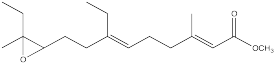 The juvenile hormone of the cecropia moth caterpillar (JH-1, below) is a regulatory hormone used to control the organism's development by preventing it from pupating until conditions are right.