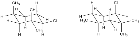 In which of these two chair conformations is an E2 reaction ready to occur?