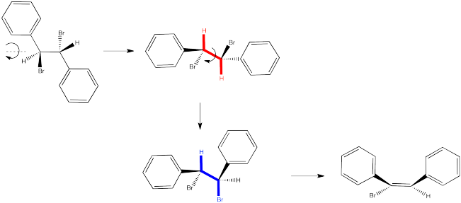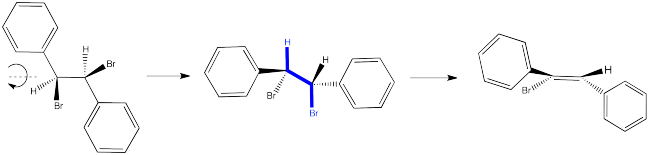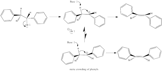 Thus, in the case of the dibromostilbenes examined before, E1 elimination would result in the same product in either case.
