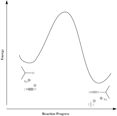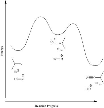 A look at the reaction progress diagrams for these two reactions illustrates some big differences. We will look at cyanide anion, a nucleophile, substituting for chloride in 2-chloropropane.