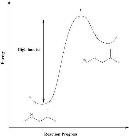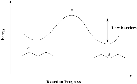 Figure NS5.6. A high barrier to return to a secondary cation from a tertiary one via a 1,2-hydride shift.